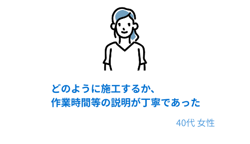当社スタッフが責任を持って行いますので、安心してお任せください。施工時間の目安
