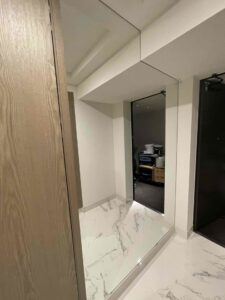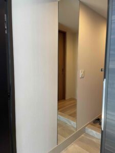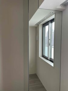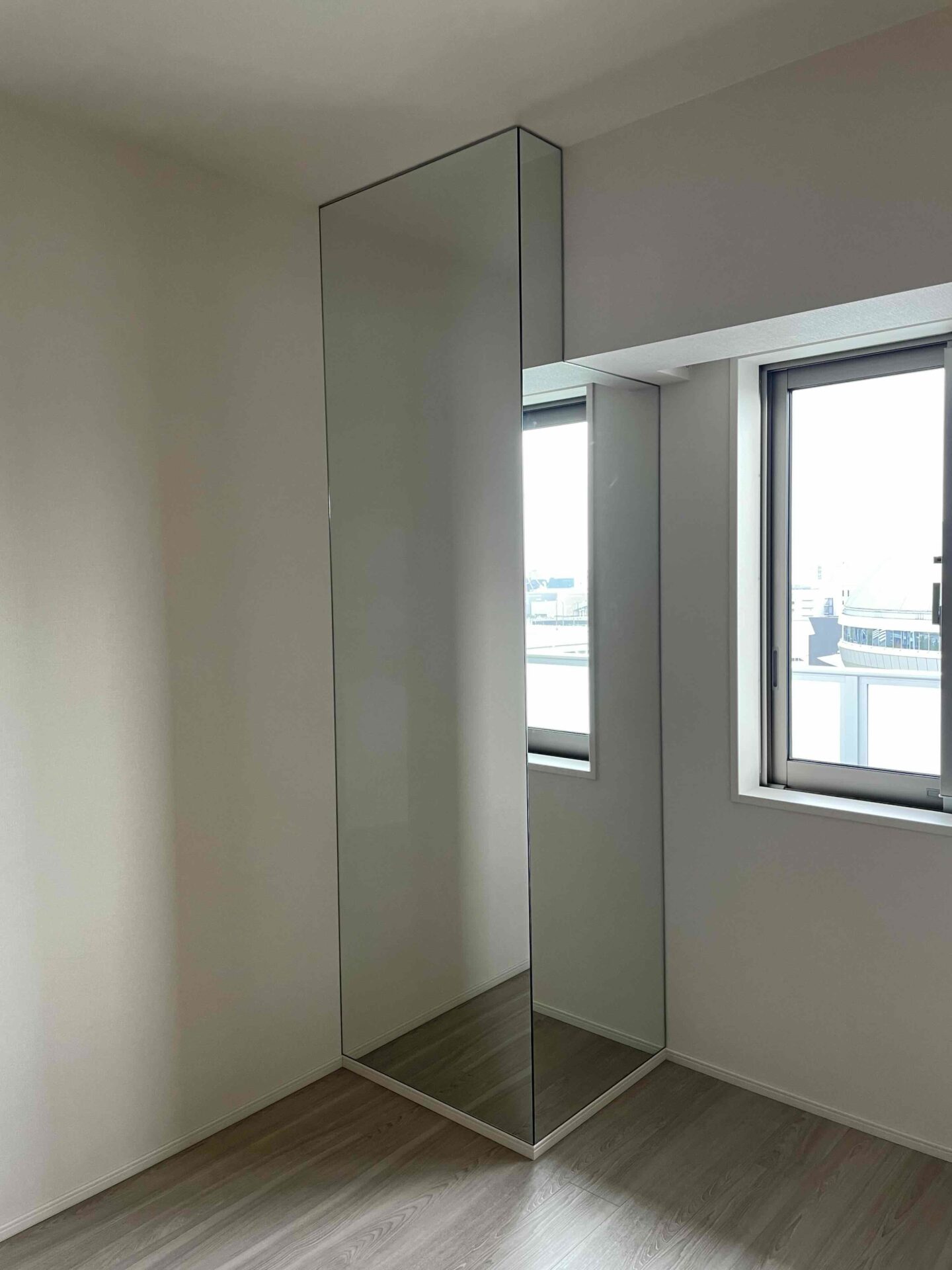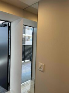 サンプルチェック・現地調査ミラーのサンプルをお持ちし小口の仕上げやミラーをご確認いただきます。 また、施工箇所の採寸、下地の状態、施工スペースも確認します。